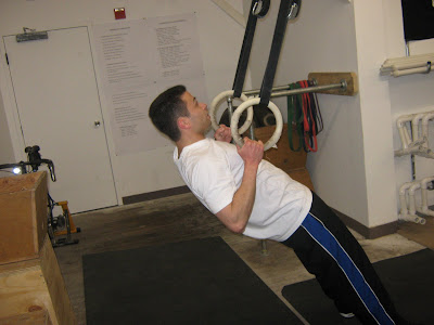 A2:Ring Dips 12-12-12 or Bar Dips 12-12-12 or Push-Ups 15-15-15, rest 45 secs