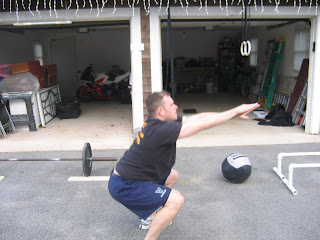 Today was a great day with another new recruit added. Ross, is the proud owner, of the house, which we will be training out of over the next whatever months. We got the pull-ups bar up and it strectches about fourteen feet across. We used a support system, which will be sufficient enough to hold a few people at a time. We are truly excited about this new adventure. I talk to one of the people from Crossfit today and we are now pretty much affiliated through Crossfit. We will change our webpage over within the next few days to VagabondCrossFit.com. This is a huge step and finally my dream has come true. We have a solid base of New Crossfitters and they are all excited about our new journey that we will take on. We will probably start working out of the new garage on Monday and will go from there. I cannot utter the words of excitement and joy that I have right now and hopefully this will be a successful run within the South Shore Massachusetts. We have some great people involved in this and the sky is the limit. Today Kevin, Chris, and Ross tackled some gnarly workouts and they killed it all. Chris was truly impressive as he tackled the 9 fundamental movements in a 1 minute setting. Ross tackled his first CrossFit workout of the day with the likes of “Tabata This.” He killed the workout and showed some great flexibility within his hip flexor region. Kevin did a fundamental workout and the pain on his face shows it all through the workout. I am so proud of these guys and how they have really hit these workouts with great technique and some real great intensity. They have no quit in them and they will only get better.